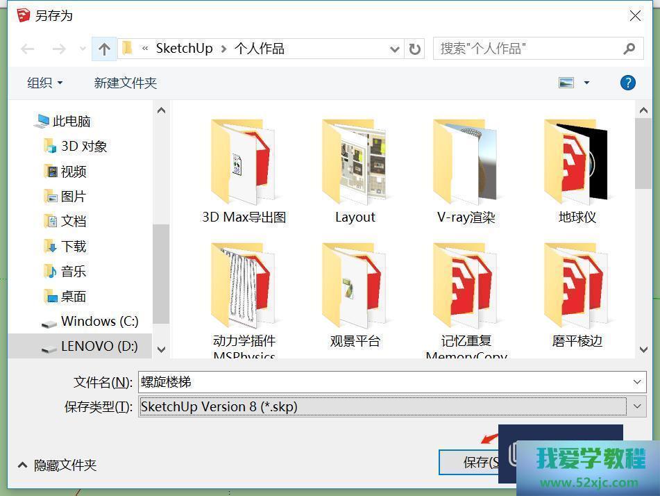 第5步找到上面步伐存储的SketchupVersion 8及以下版本模子文献,点击翻开