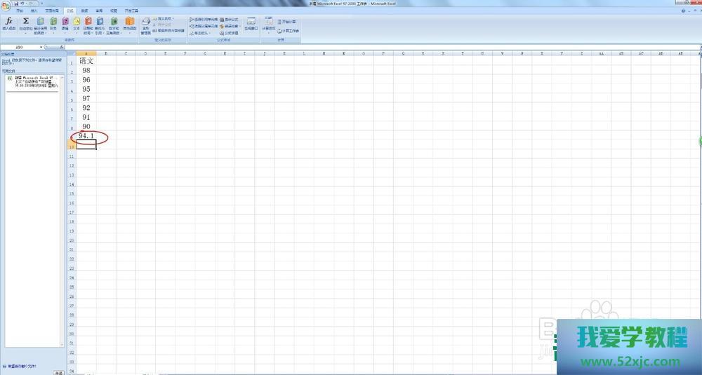 回车键敲完从此就自愿求出来这科的均匀分了(94.1便是他们的均匀值),如下图所示