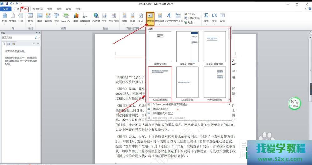 单击【文本框】,选取己方须要的,小编这里以插入【边线型大纲栏】为例。