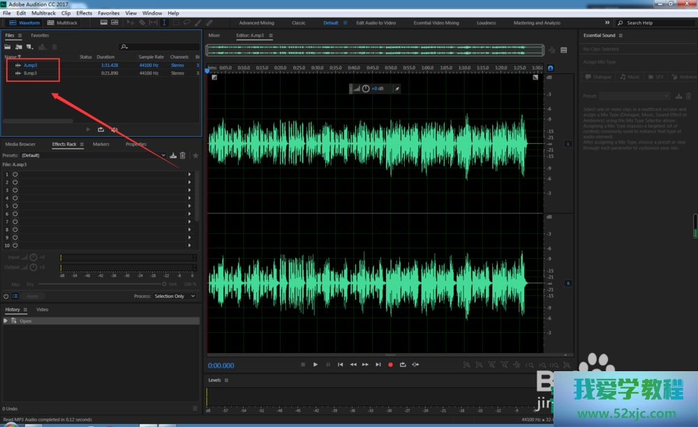 翻开Au(Audition),将须要团结的两个音乐文献拖动到文献窗口,将文献导入进去;