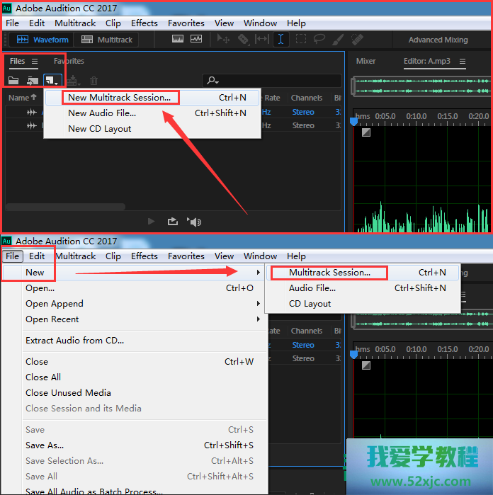 正在文献窗口点击新修按钮,抉择新修众轨道音频项目(New MultitrackSession),或者正在文献(File)菜单下抉择新修(New)→(New MultitrackSession)新修众轨道音频项目;也可能操纵敏捷键Ctrl+N来新修一个众轨道音频项目;