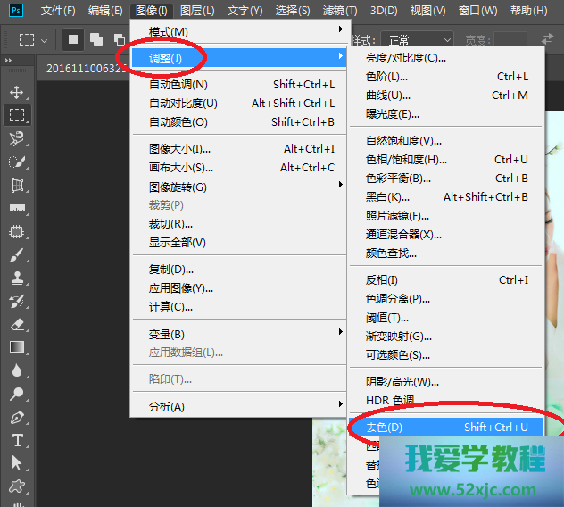 对图层图像-调剂-去色,