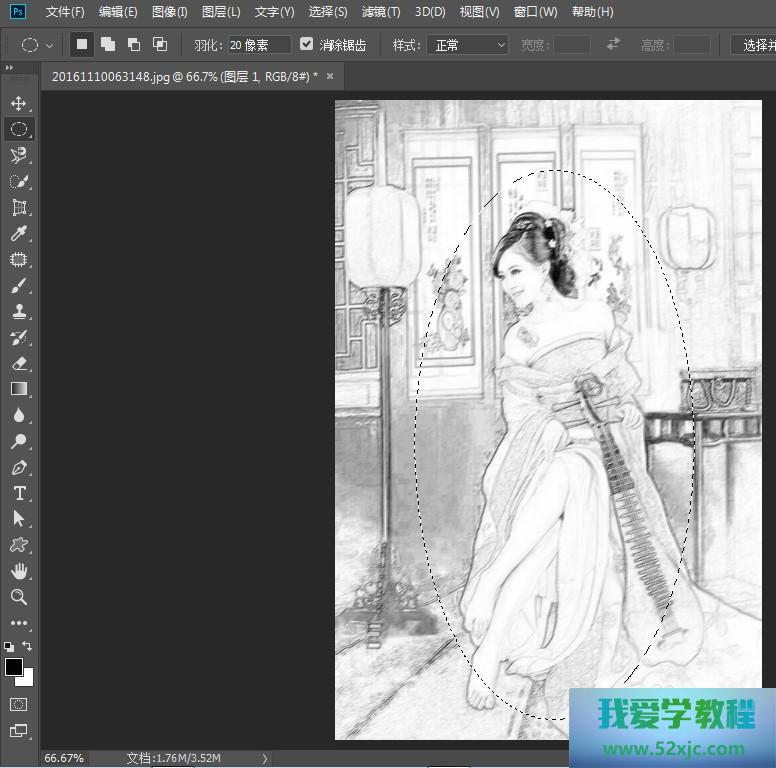 椭圆选框选出人物局限,成仙50个像素操纵,点击增添图层蒙板