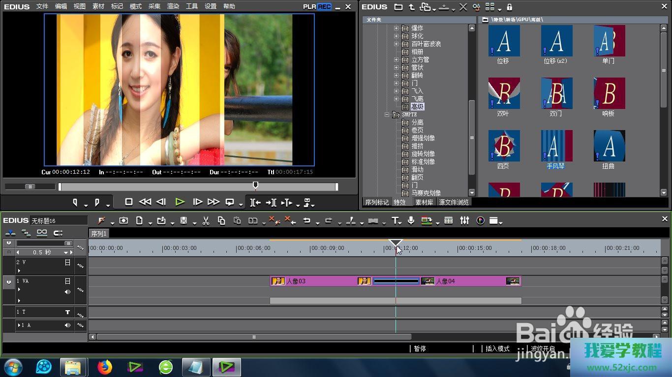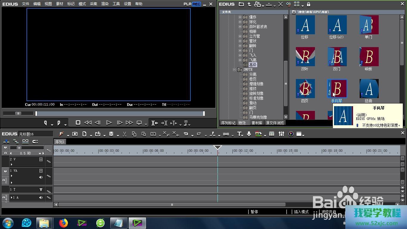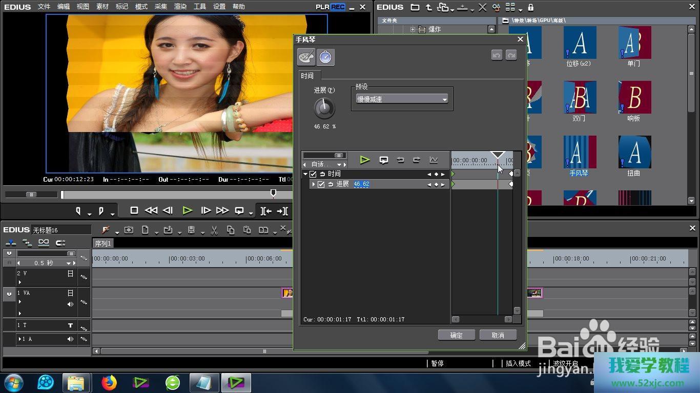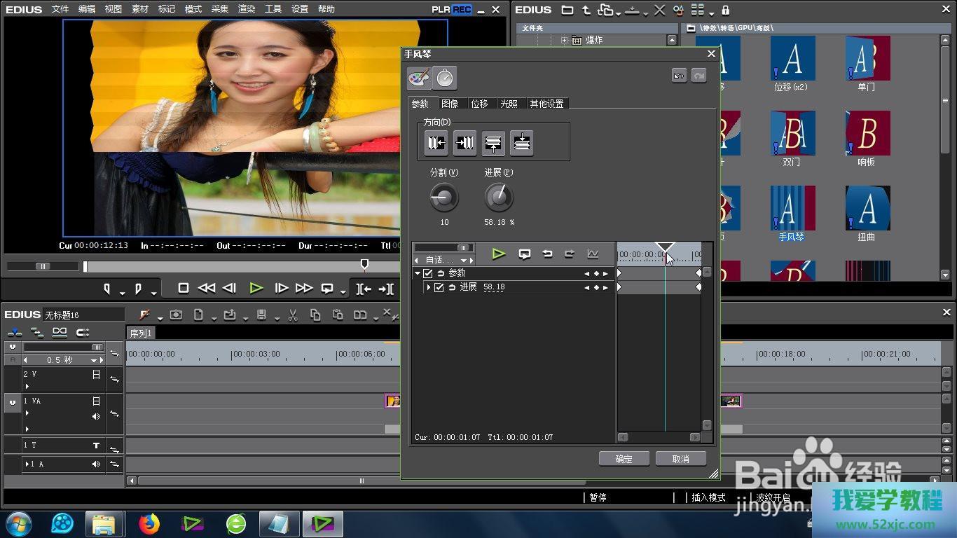 最初即是正在EDIUS的殊效库中找到“高级手风琴效率”的场所:殊效-转场-GPU-高级-高级手风琴效率。