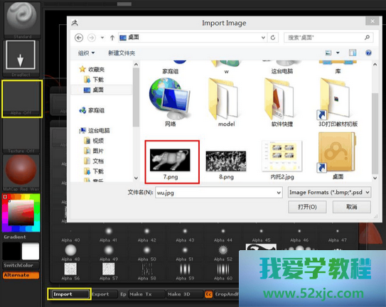 成立笔刷:正在左侧导航栏将笔刷类型成立为Standard(程序)类型,道途办法成立为DragRect(拖拽),点击Alpha Off>Import[笔刷通道封闭>导入],拣选盘算好的浮雕灰度图导入,如图。