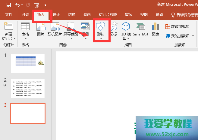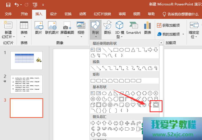 1、翻开PPT,点击“插入-形态”,选取一种形态,正在PPT中绘制该形态