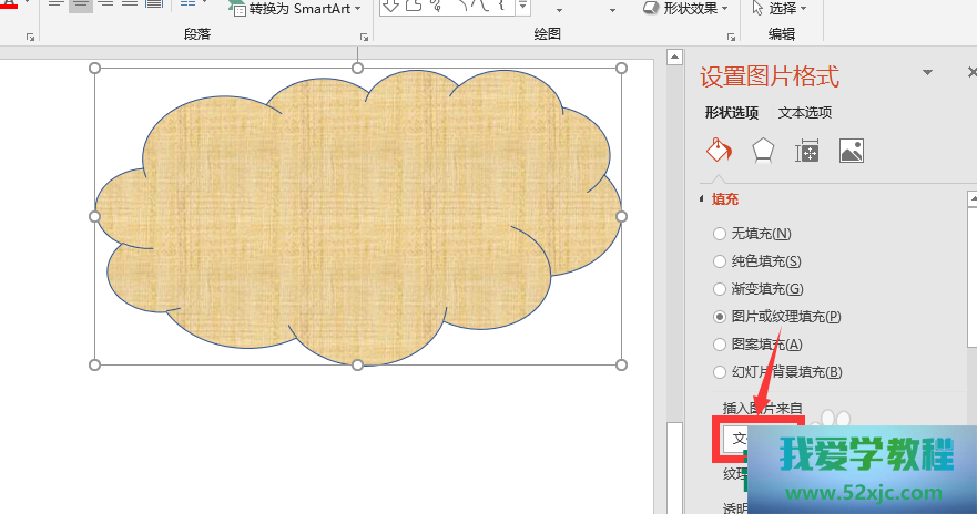 正在右侧设备图片式样中,选取“图片或纹理填充”,然后正在“插入图片来自”下点击“文献”