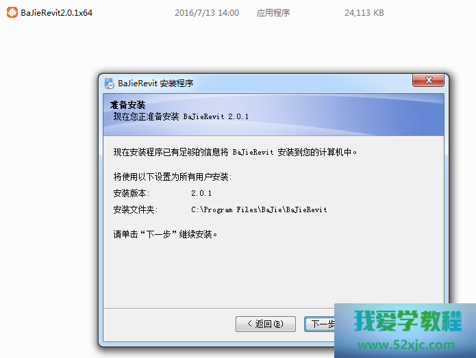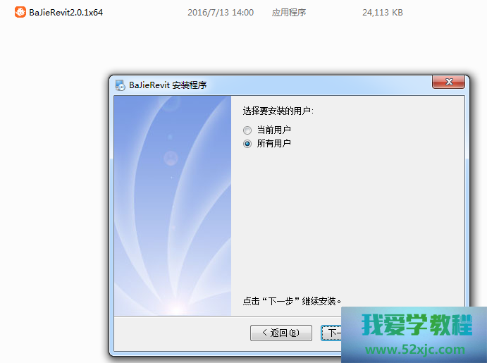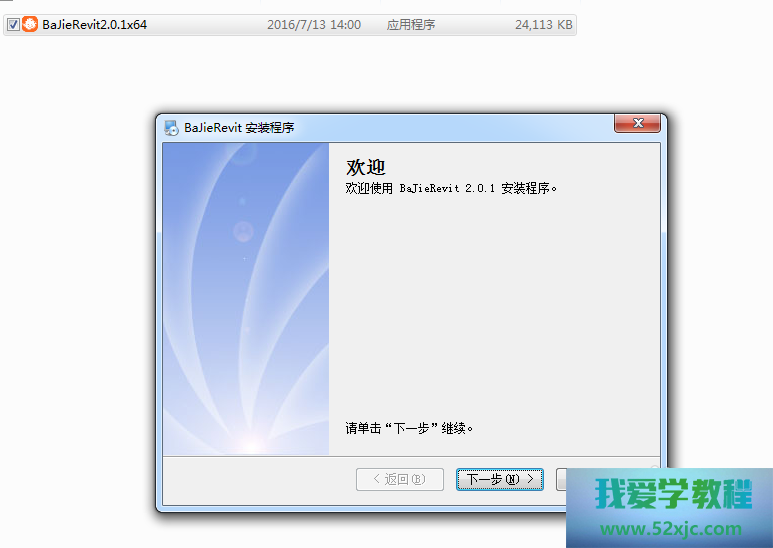 翻开文献下载名望,运转BaJieRevit2.0.1x64,点击下一步。