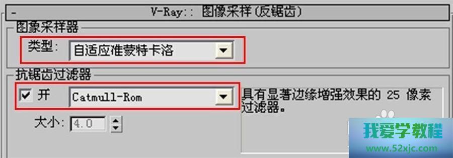 2、勾选抗锯齿过滤器中的开合,拣选Catmull-Rom办法,云云会使咱们的衬托画面更明晰些。