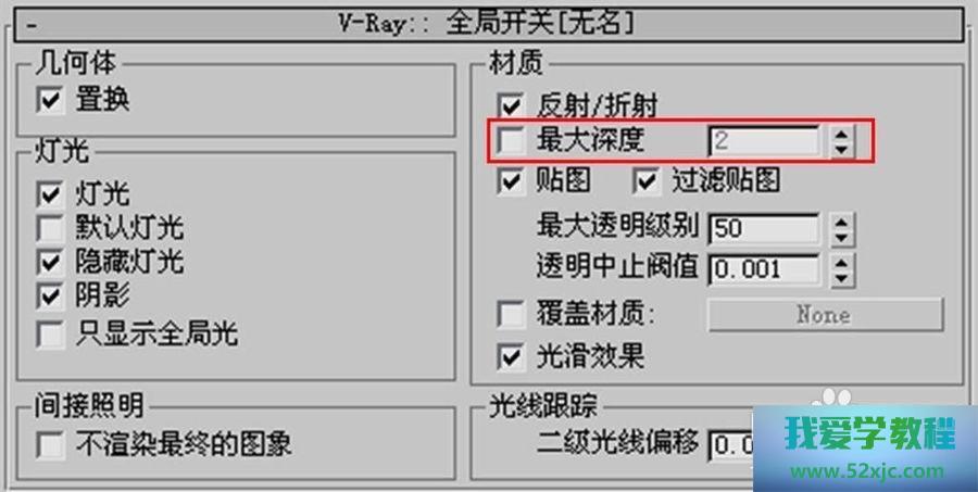 一、全部参数设备:去掉材质最大深度的勾选,这时材质反射的最大深度会采用默认的设备,凡是为5,由于是最终衬托于是反射要尽恐怕的富裕。