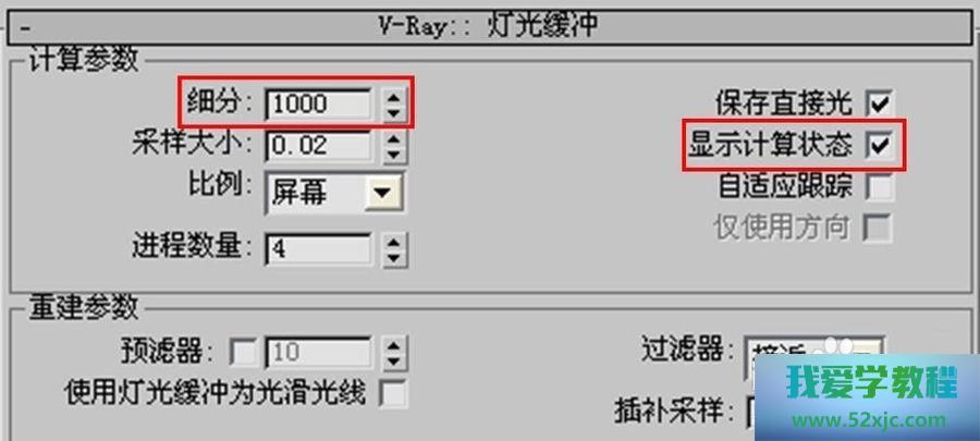 五、灯光缓冲参数设备:最终衬托二次反弹中的全部光引擎能够拣选准蒙特卡洛也能够拣选灯光缓冲,拣选灯光缓冲品格会稍好一点,但很有限。借使拣选灯光缓冲,这里的细分应调至800~1000。