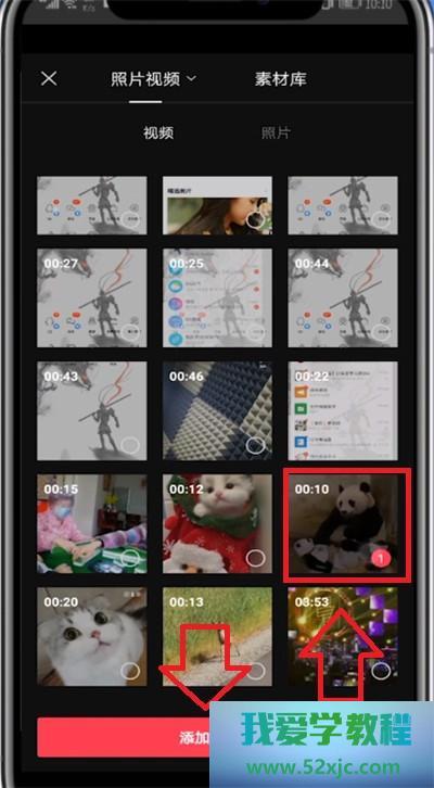 勾选一段视频点击增添到项目。