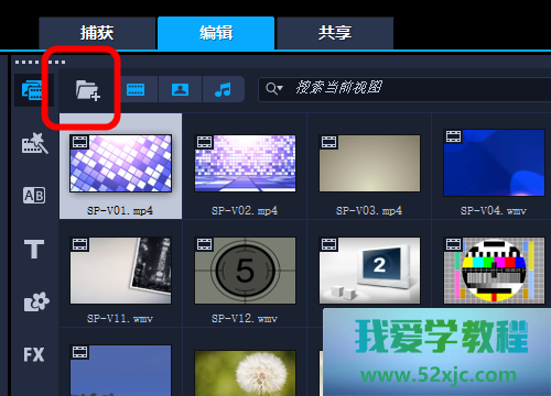 翻开会声会影,点击文献夹图标。