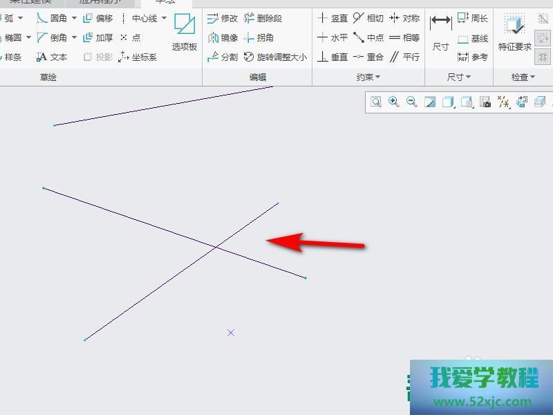 第2种情景是两条结交的直线修剪,咱们先画两条结交的直线
